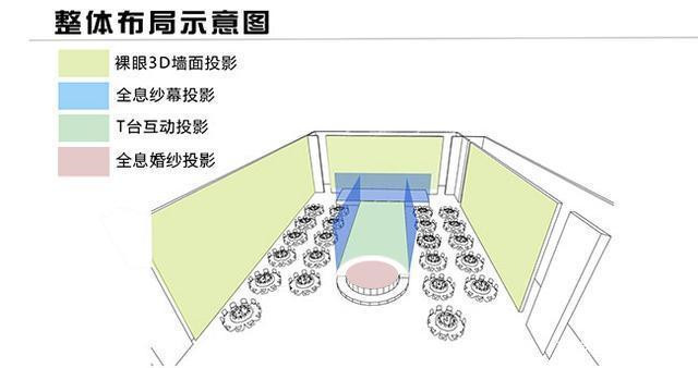 全息宴會廳是利用了全息投影技術打造的具有沉浸式舞美體驗效果的新型宴會廳,其主要以裸眼3D、舞臺全息、墻面(環幕)投影、地面互動投影和婚紗投影等幾個單元構成。