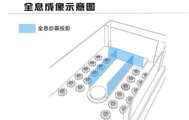 紗幕具有良好的透視性,離遠處看仿佛是在空氣中成像,結合宴會廳270度立體成像的3D效果,能夠實現雙重視覺效果。在全息宴會廳中內,全息成像可用于大型舞臺演出、各類發布會、喜宴等等。